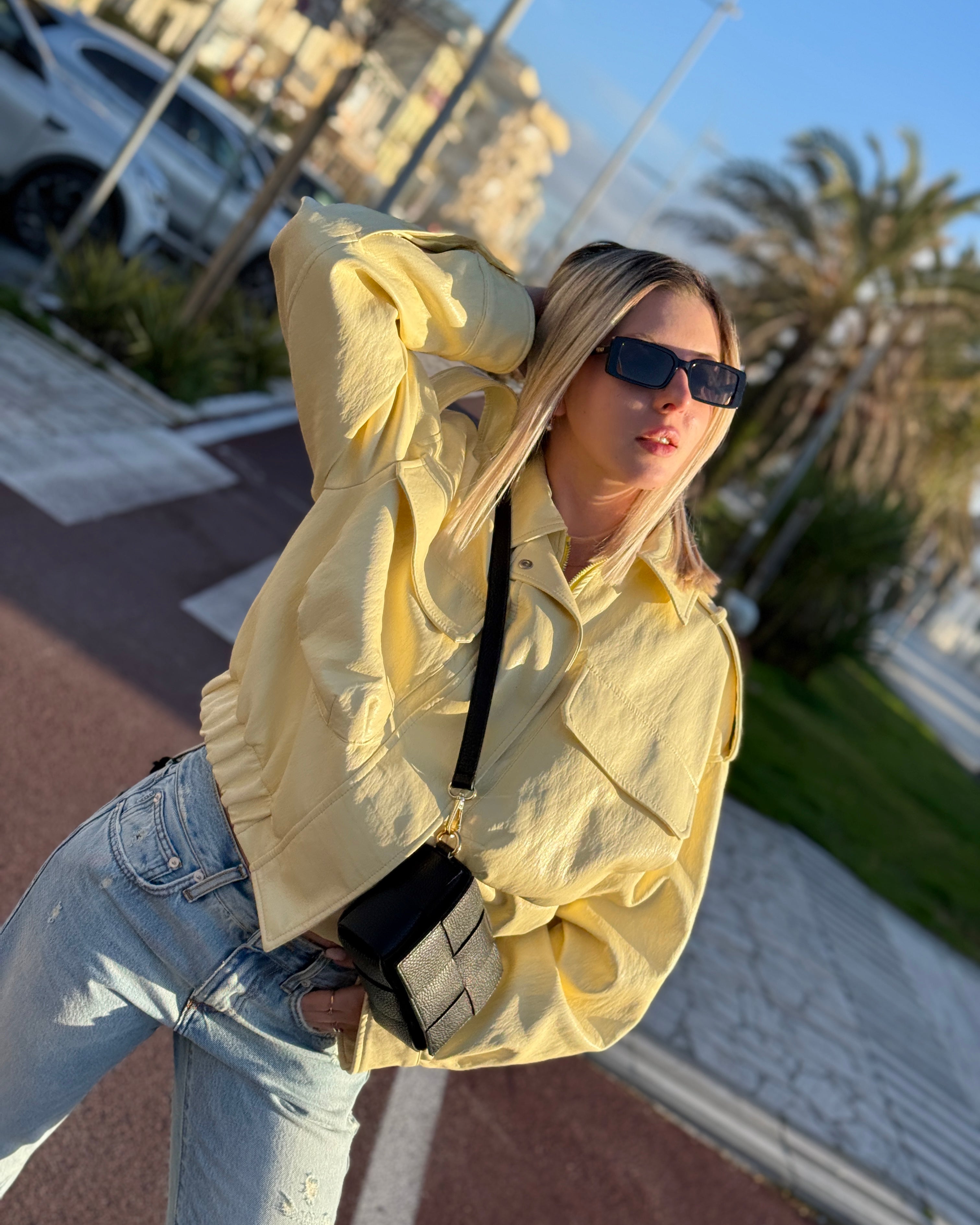 T-Shirt Basic Scollo a V Gialla Susy Mix