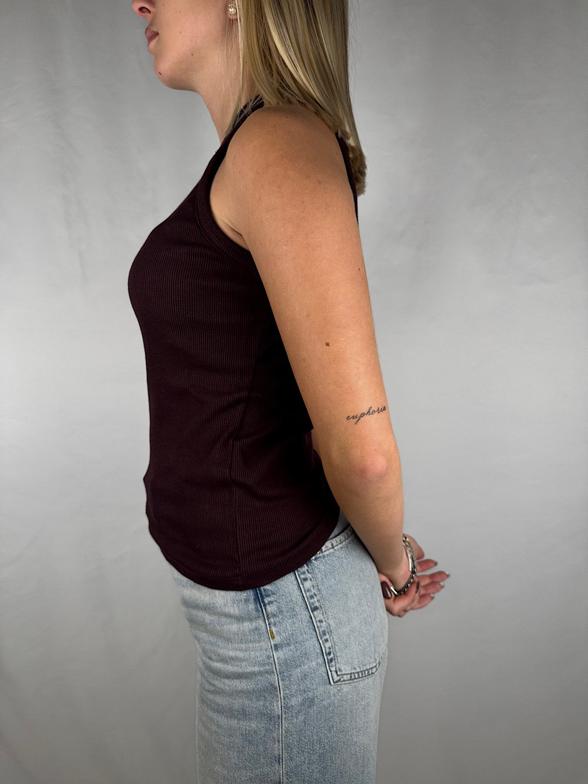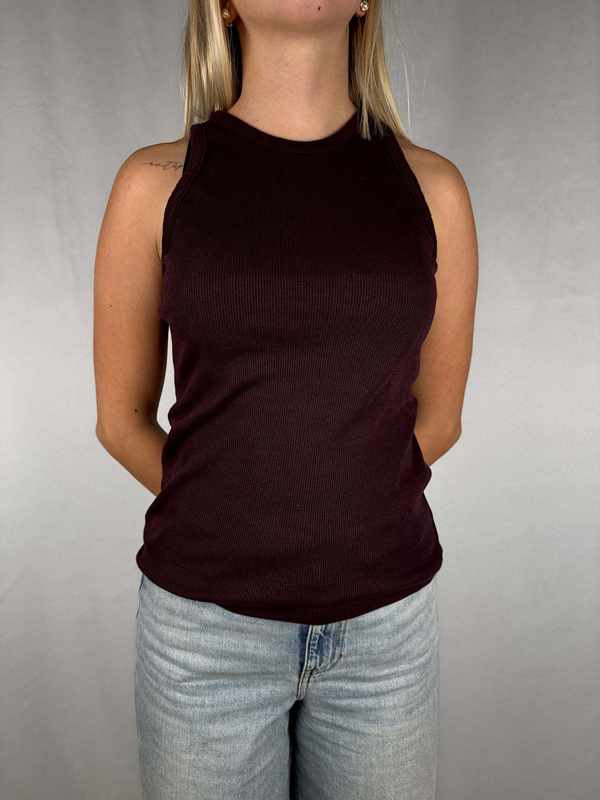 Canotta a costine con scollo a vogatore.