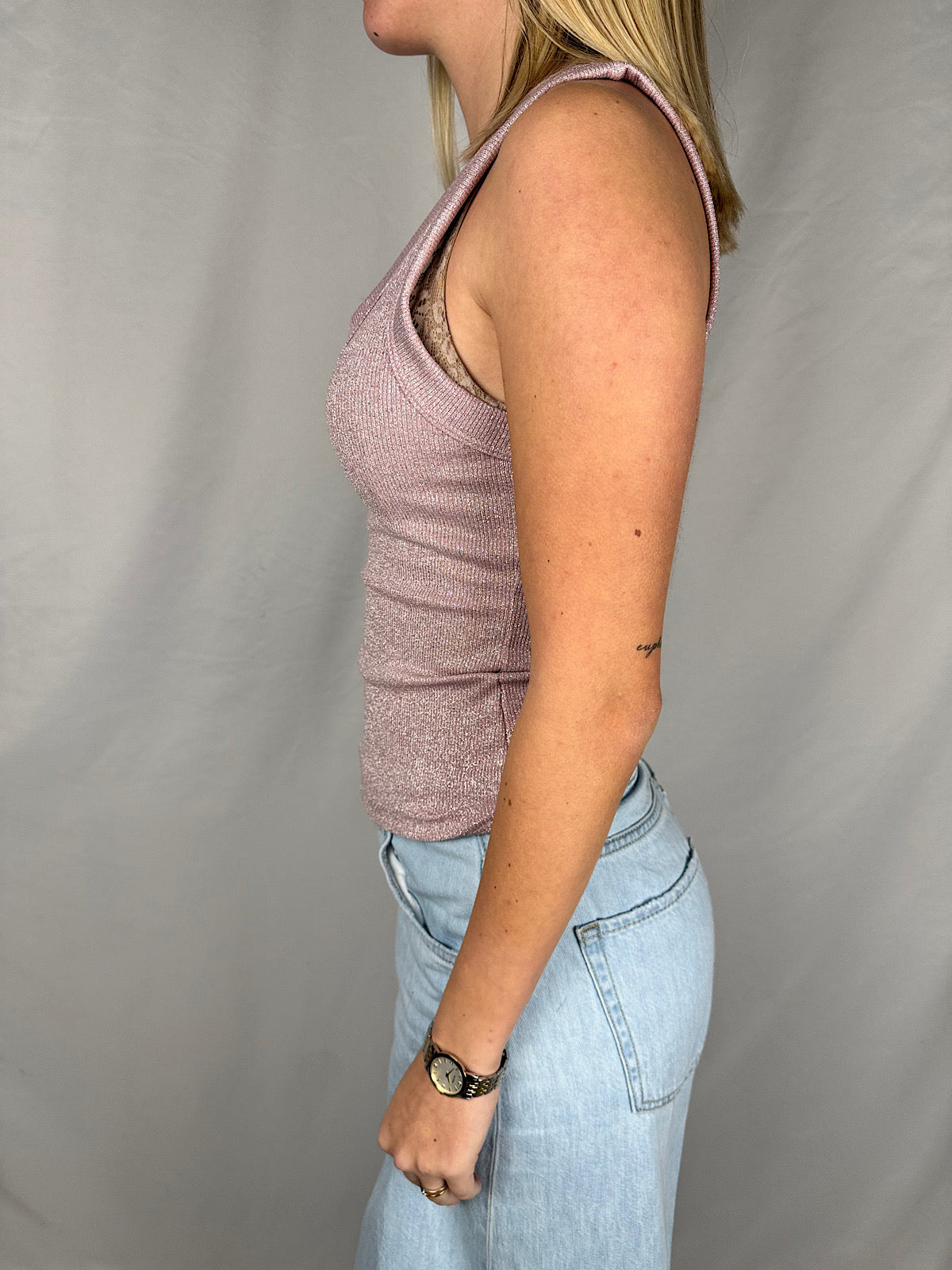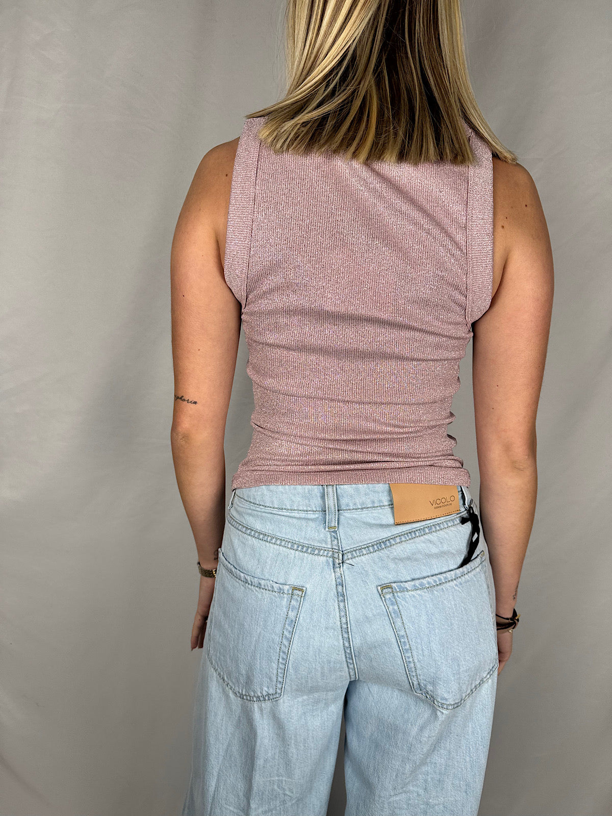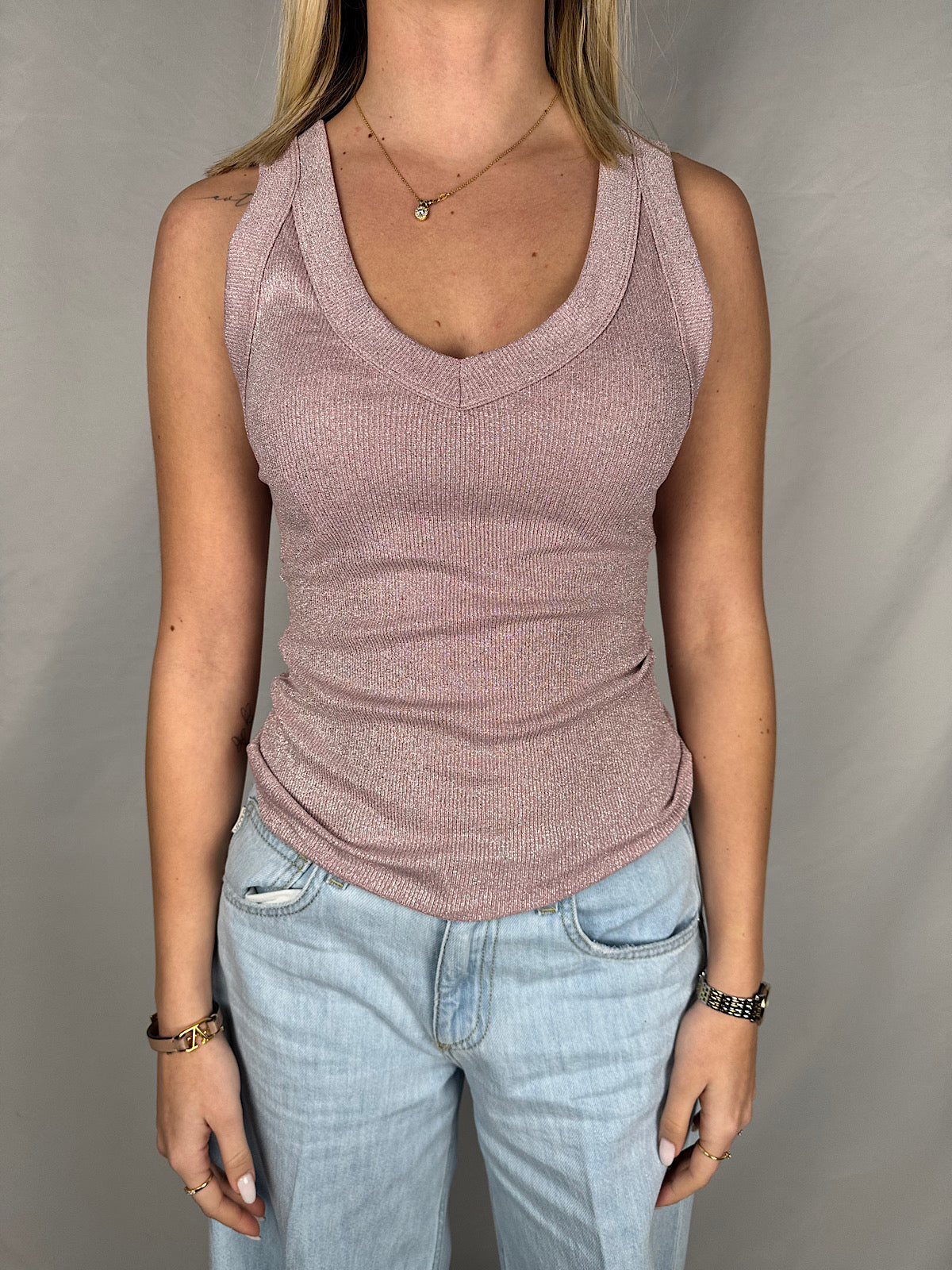 Canotta a Costine Lurex Scollo V Rosa Vicolo