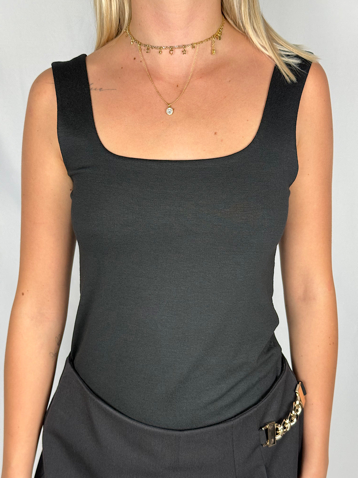 Canotta con scollo quadrato frontale.