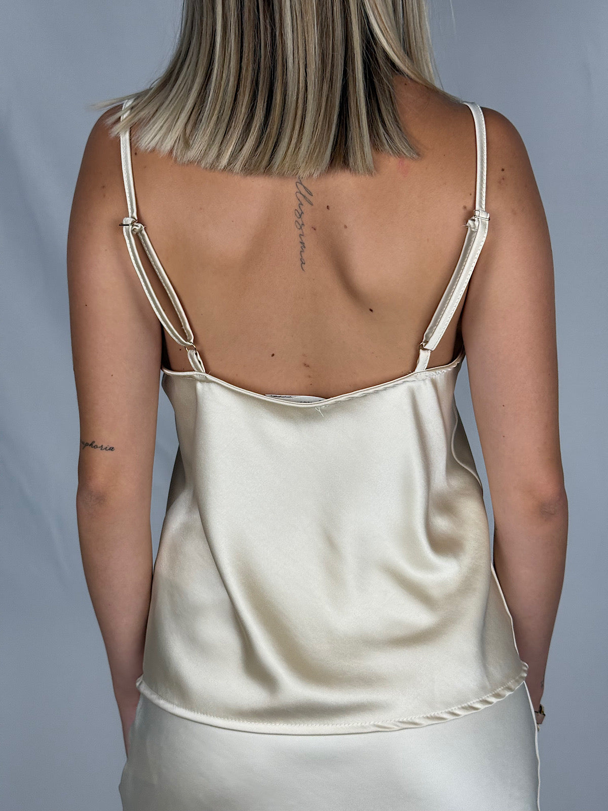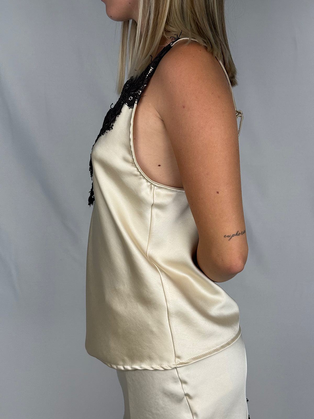 Canotta effetto satin con pizzo a contrasto.
