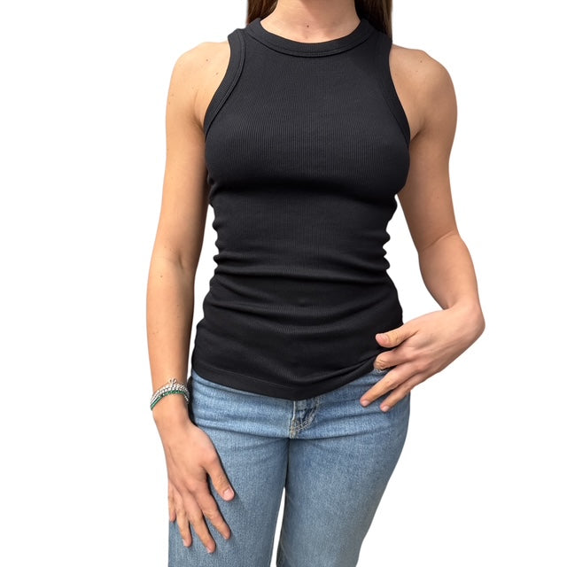 Canotta basic JJX in cotone paricollo con scollo alla vogatore a costine. Vestibilità fit regular.