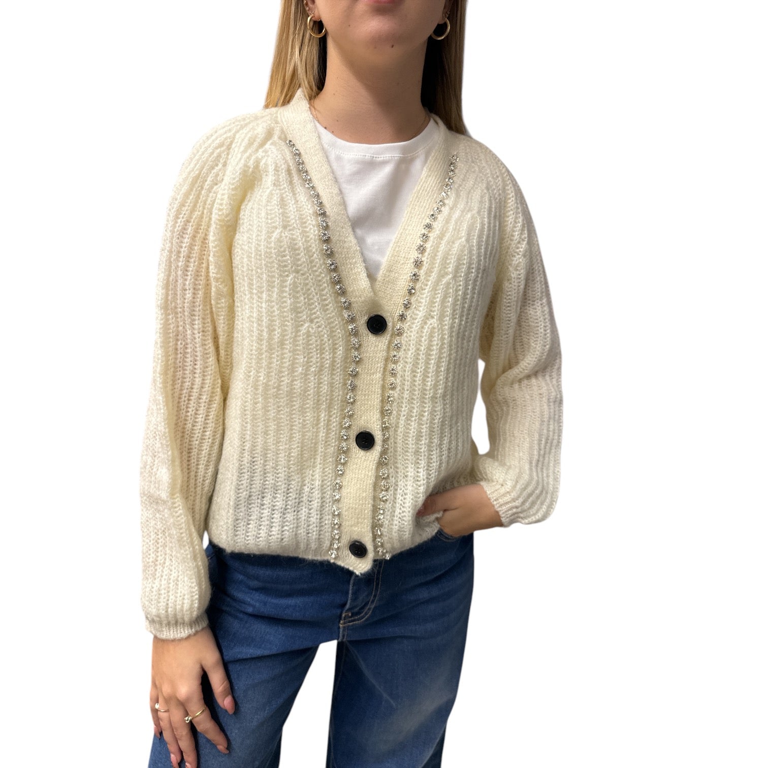 Cardigan scollo a v Vicolo con applicazioni gioiello. Chiusura frontale con bottoni. Vestibilità regolare.