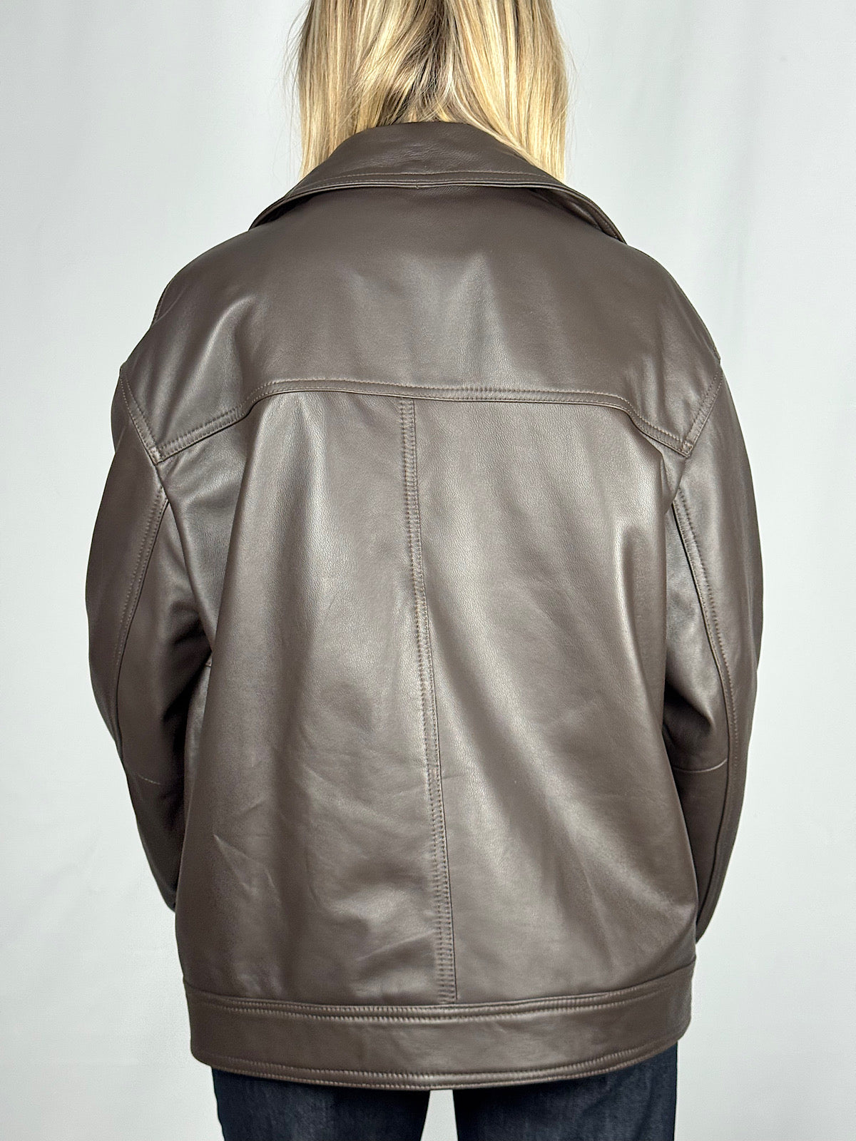 Biker in pelle modello leggermente over, offre una vestibilità comoda e versatile.