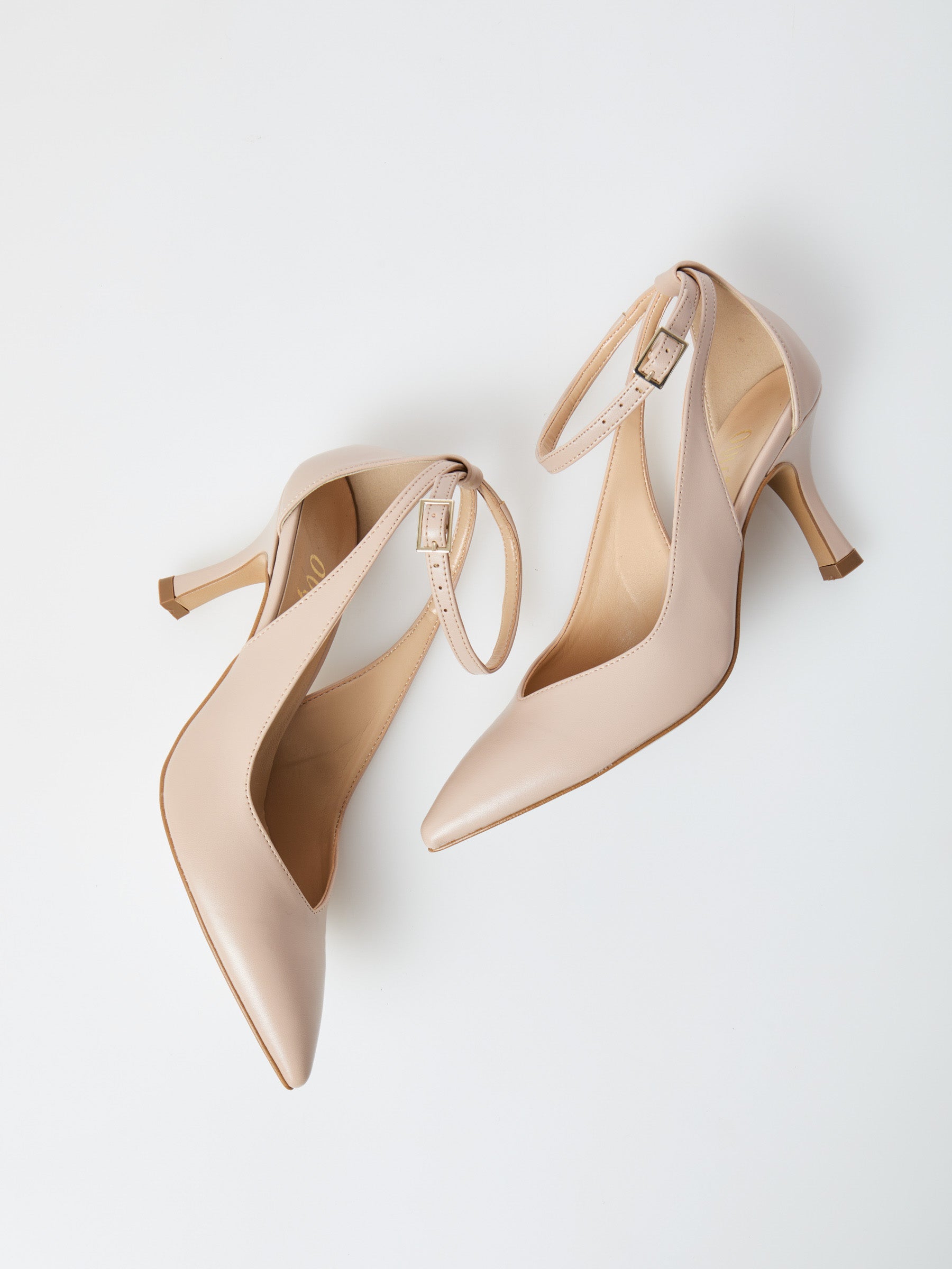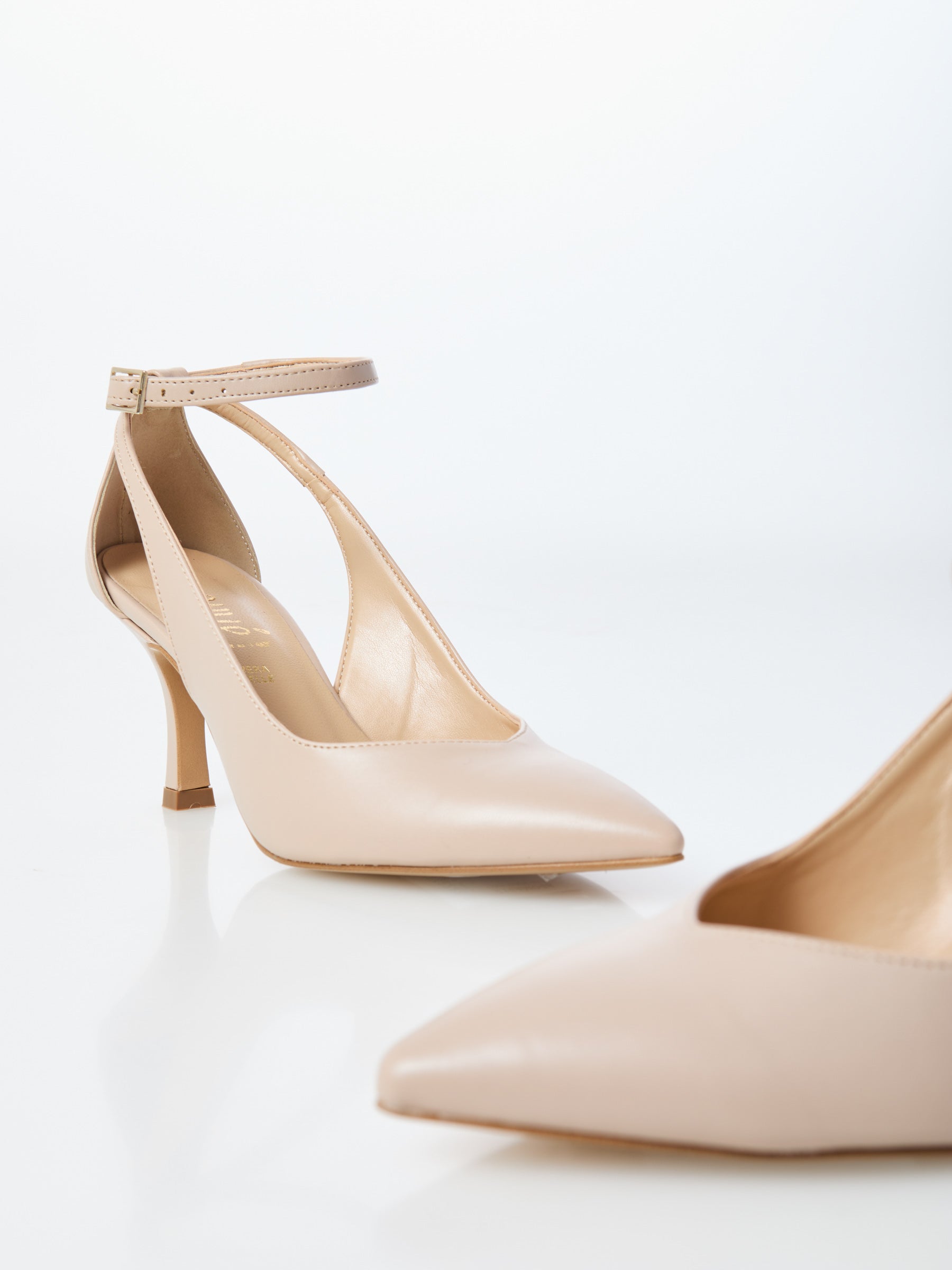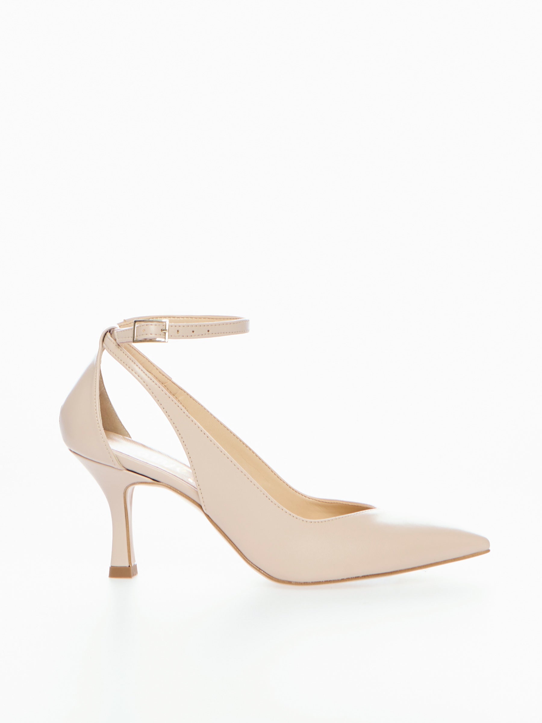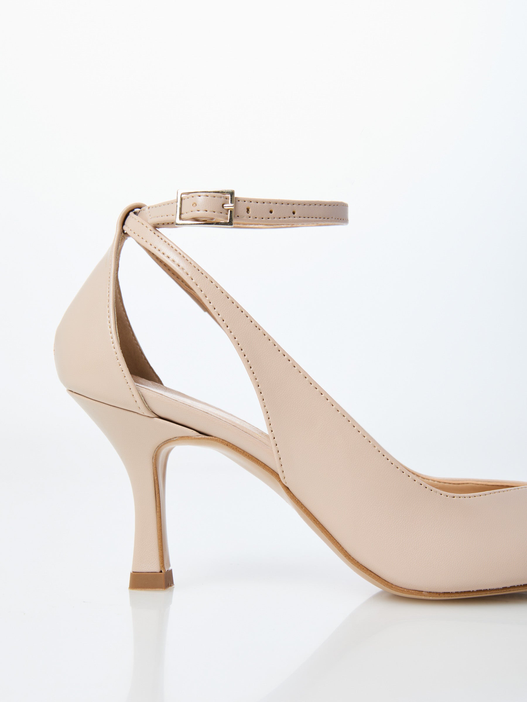 Décolleté in ecopelle con cinturino, altezza tacco 8 cm