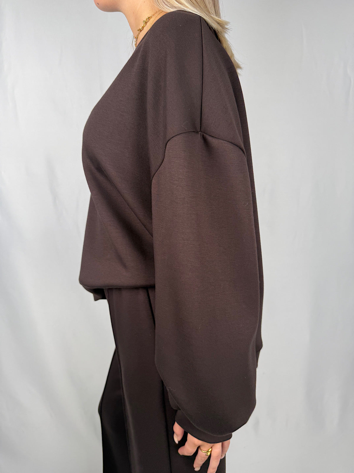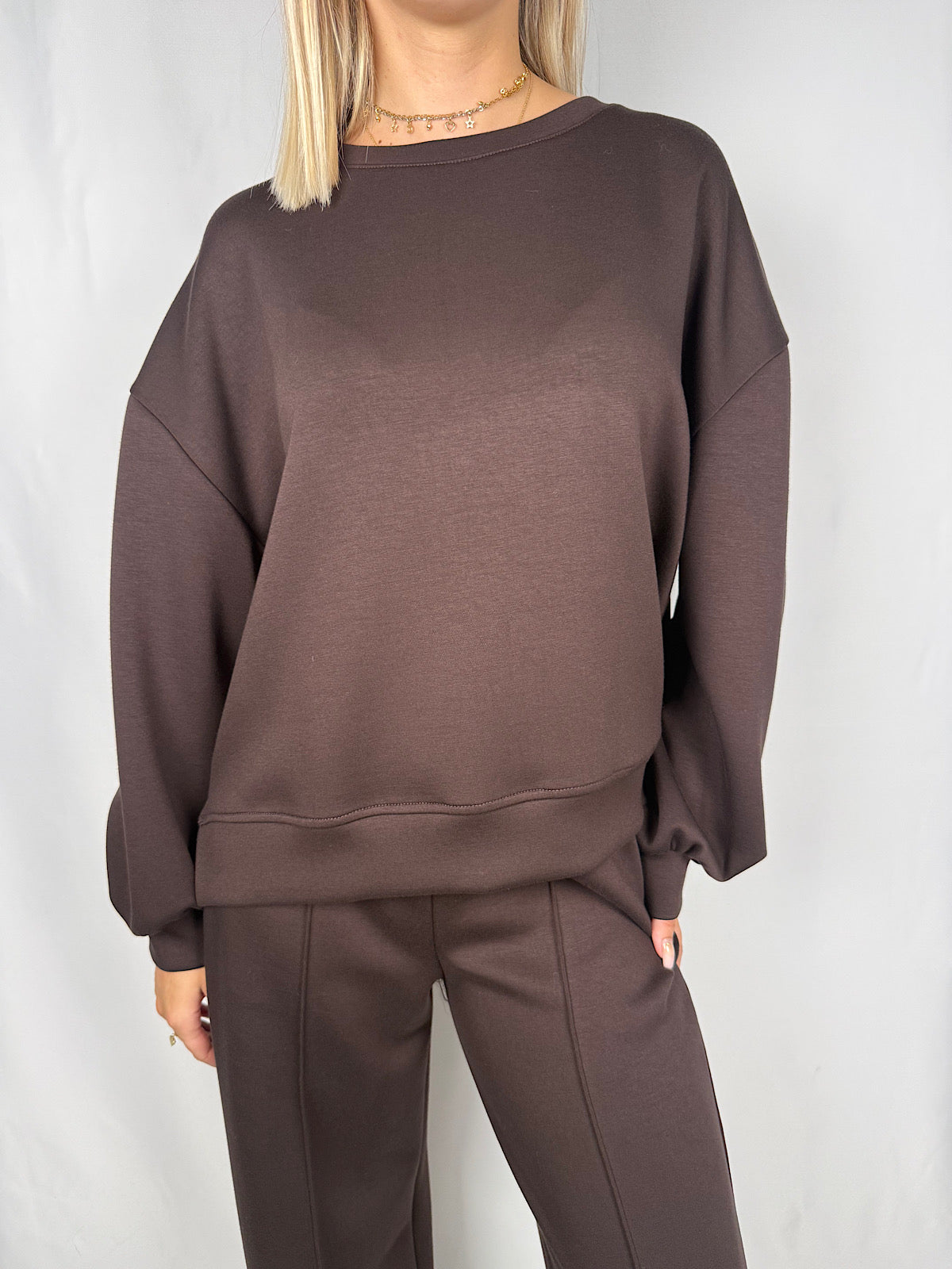 Felpa girocollo con elastico ai polsi. Vestibilità over.