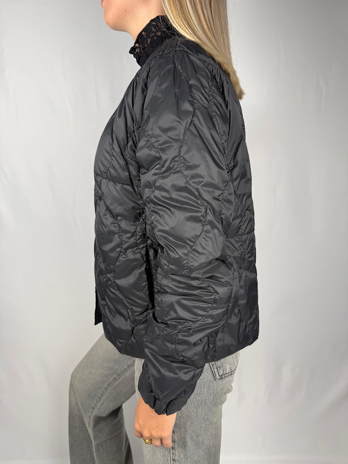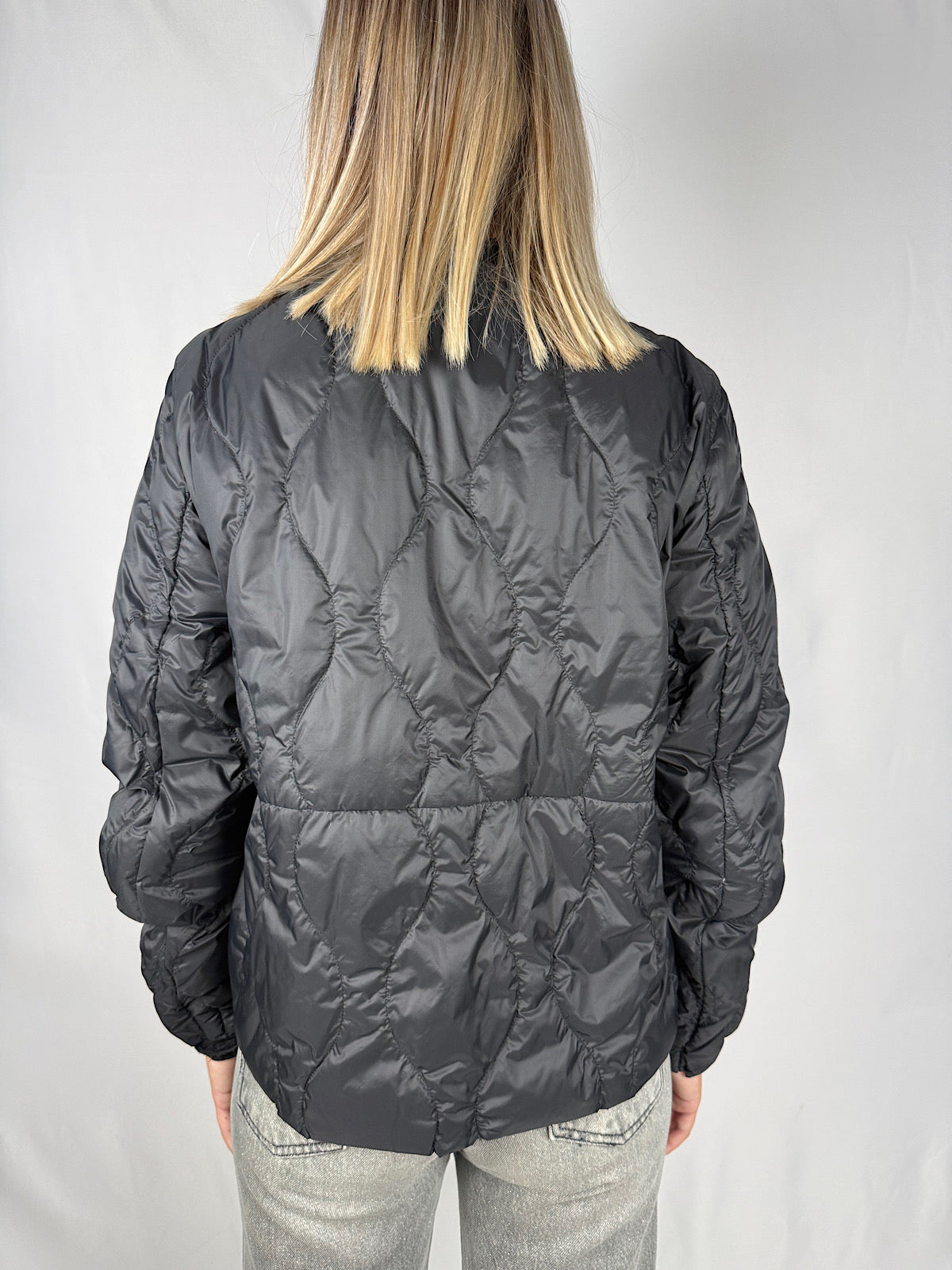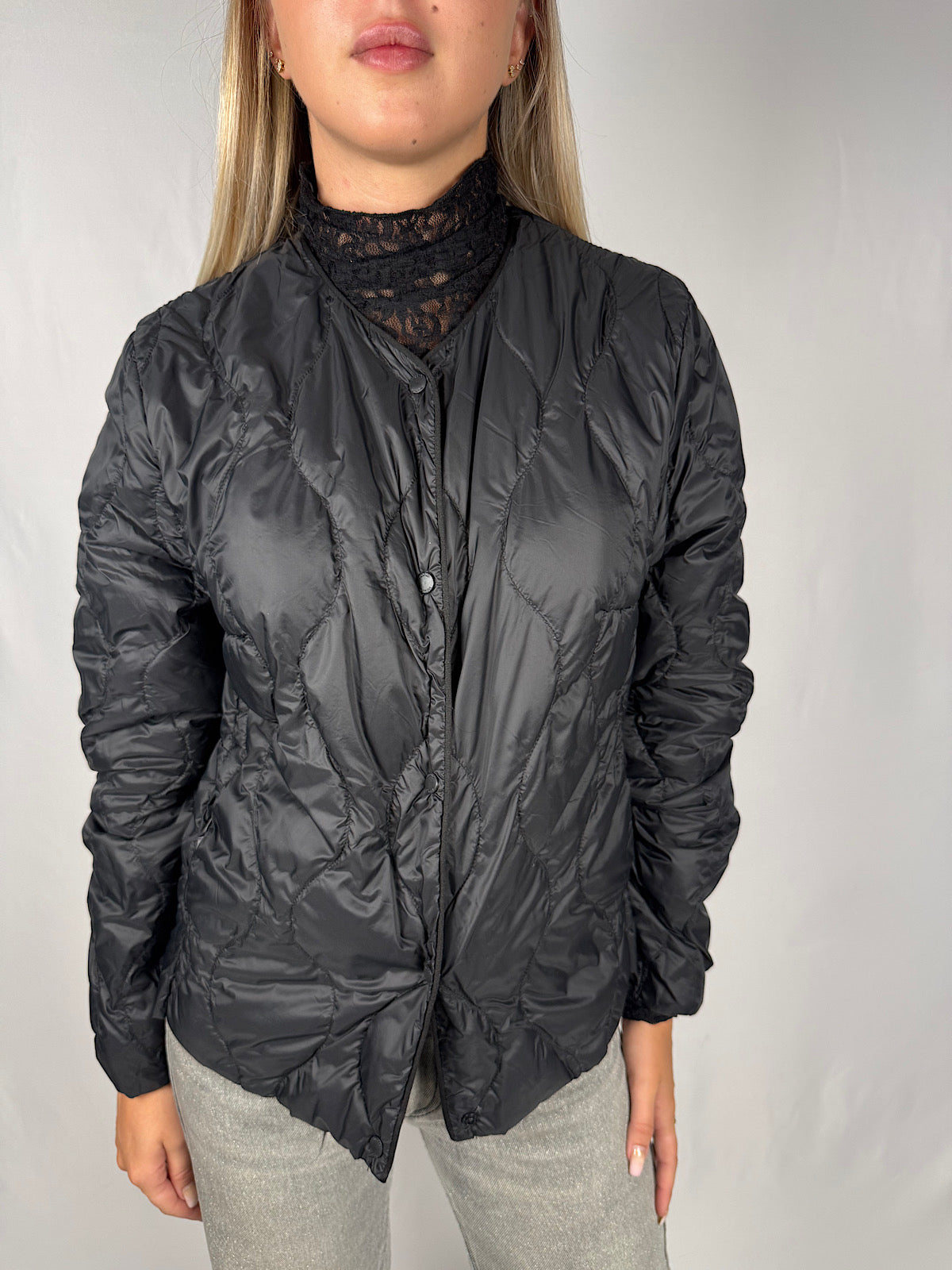 Giacca cento grammi a manica lunga, con chiusura a bottoni e sacca da viaggio.