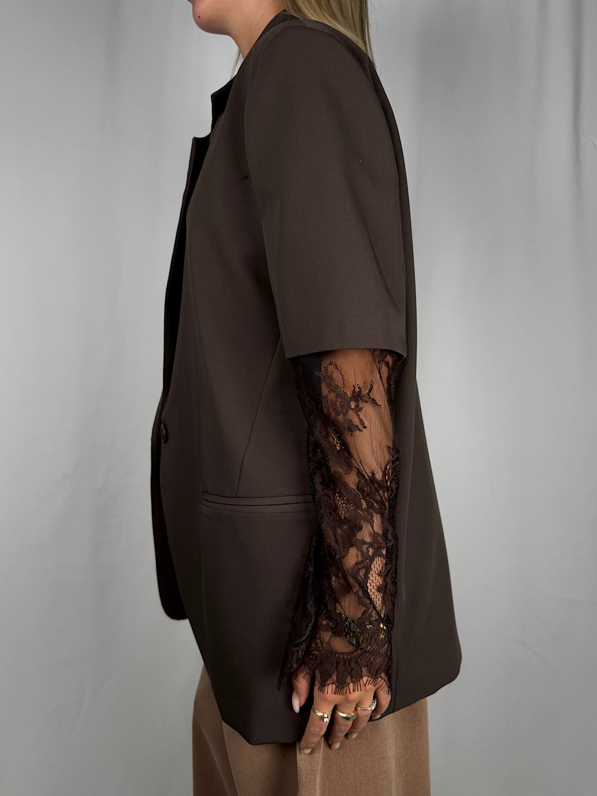 Giacca con Maniche in Pizzo Marrone Vicolo