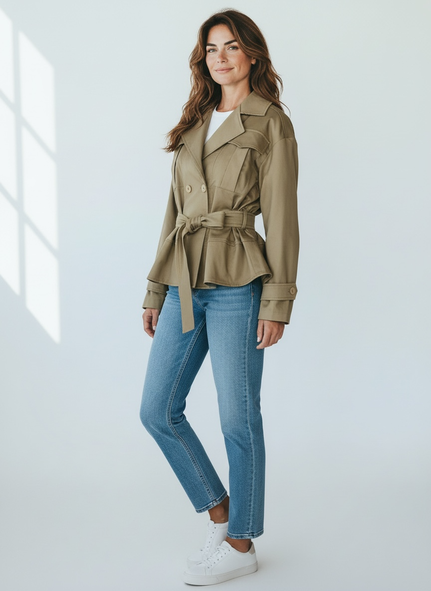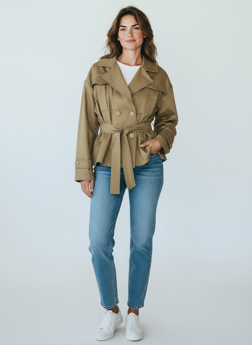 Giacca Trench Corto Tensione In Sabbia