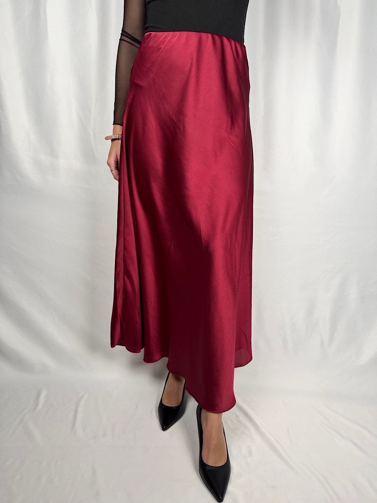 Gonna lunga in raso lucido. Vita alta con elastico.
