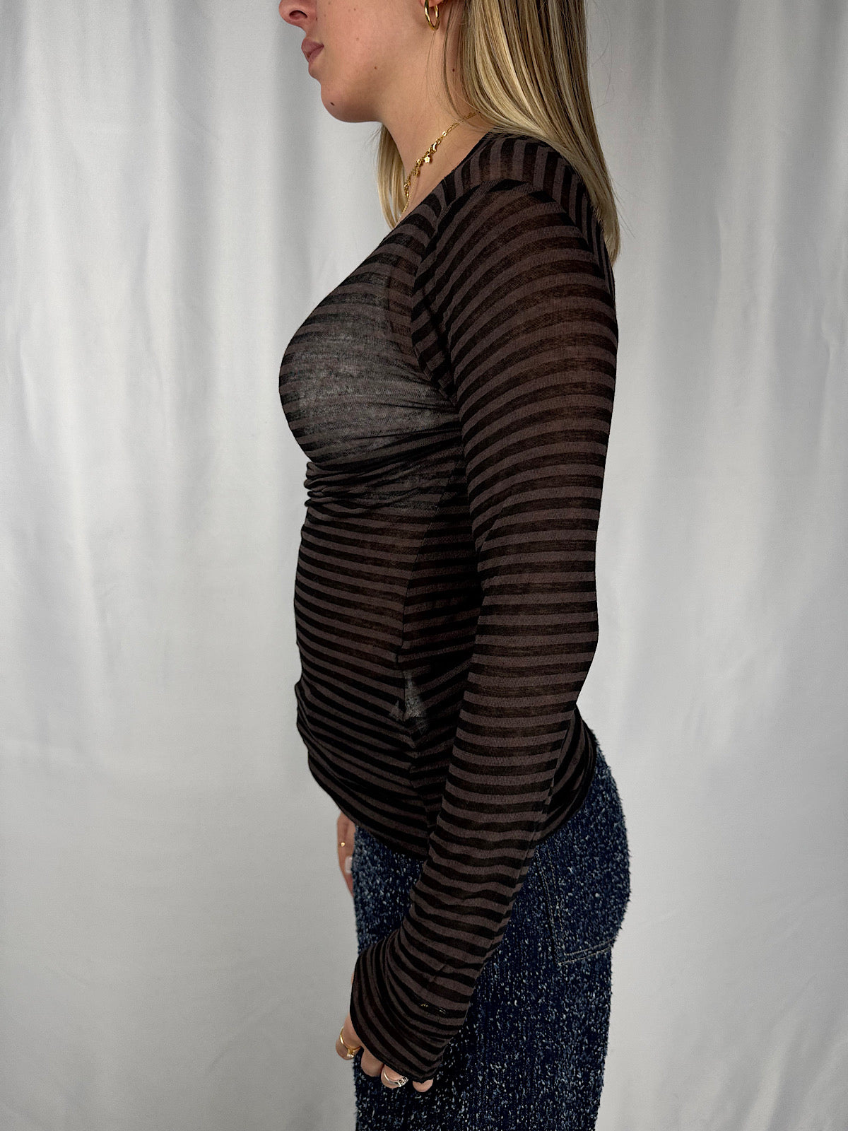 Maglia Cachemere a Righe Marrone Tensione-In