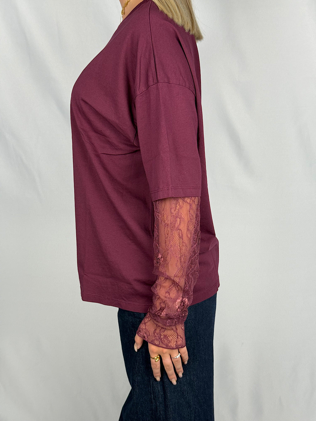 T-shirt con Maniche in Pizzo SusyMix Bordeaux