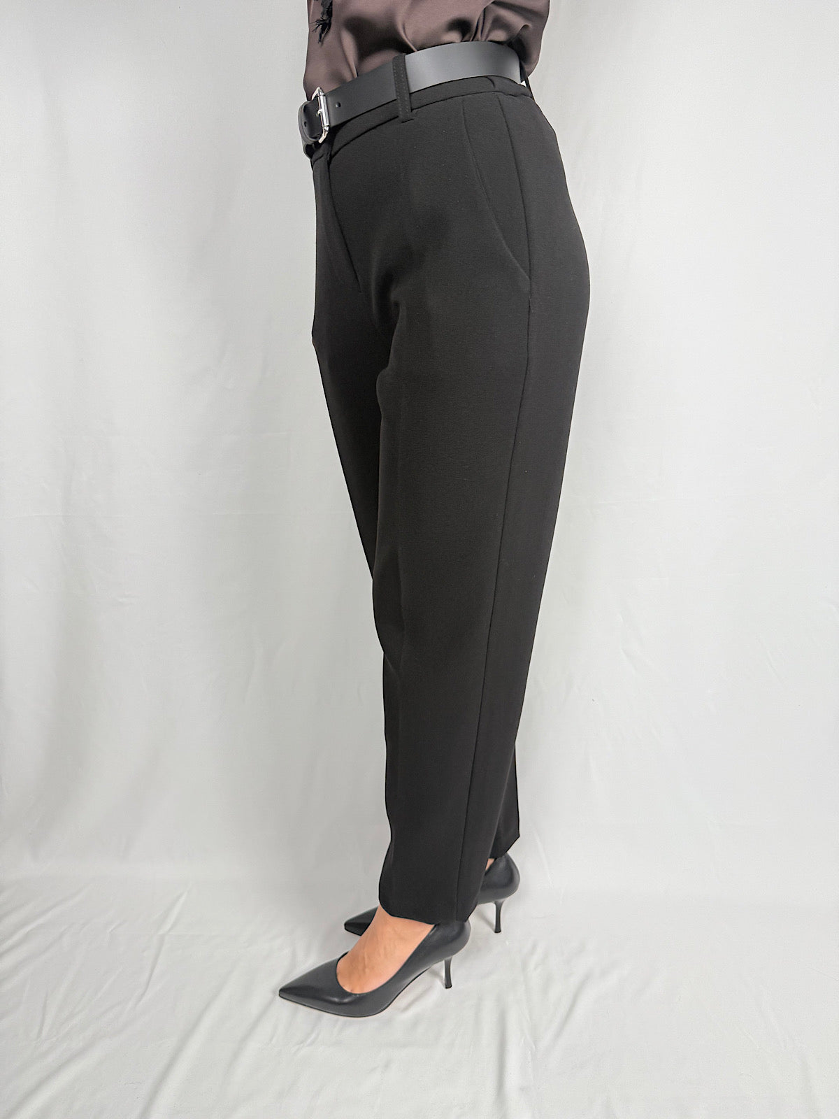 Pantalone dritto con cintura nera Tensione-in con tasche ed elastico posteriore.