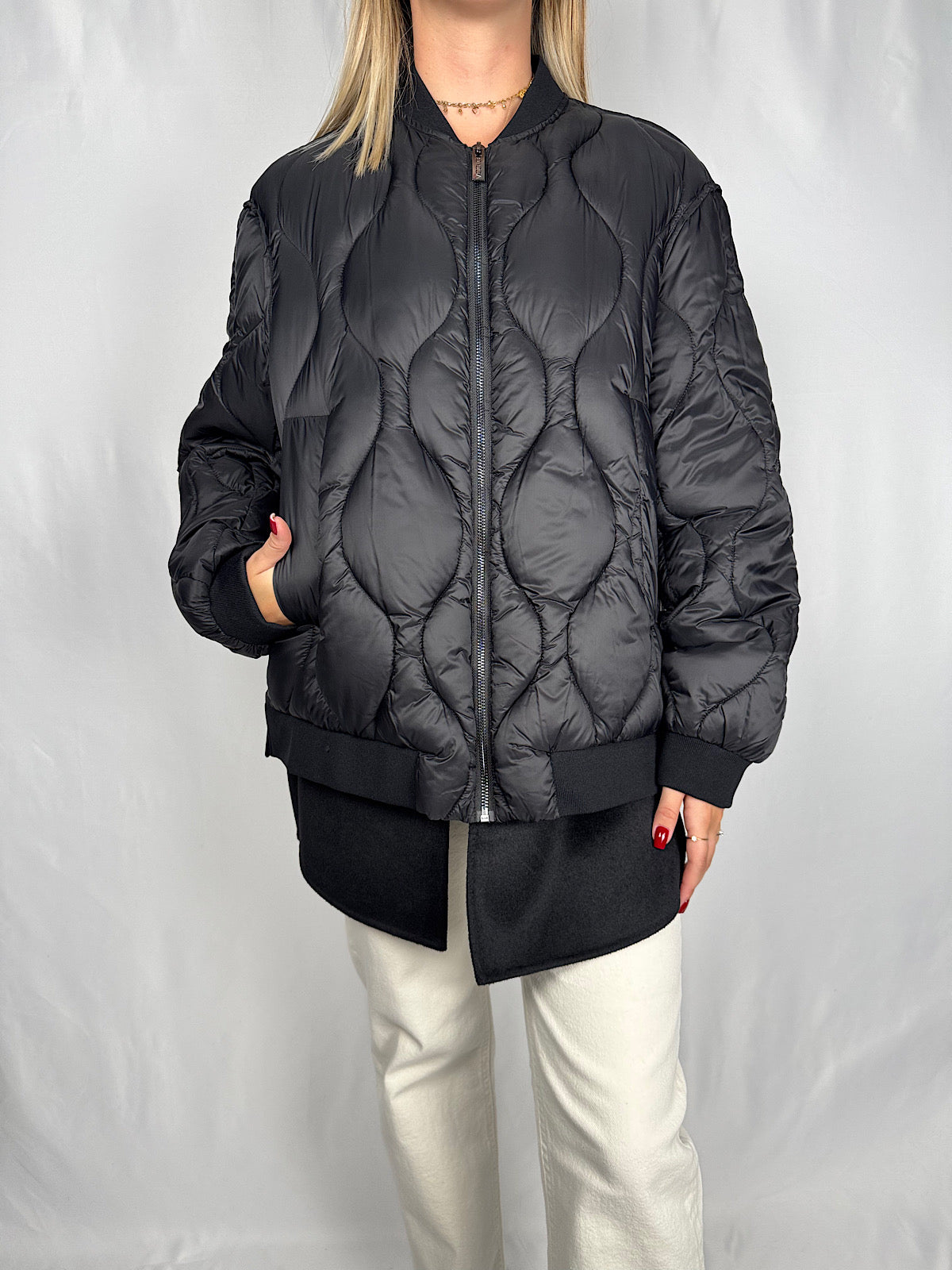 Piumino Bomber Trapuntato Doppio Tessuto Nero Vicolo