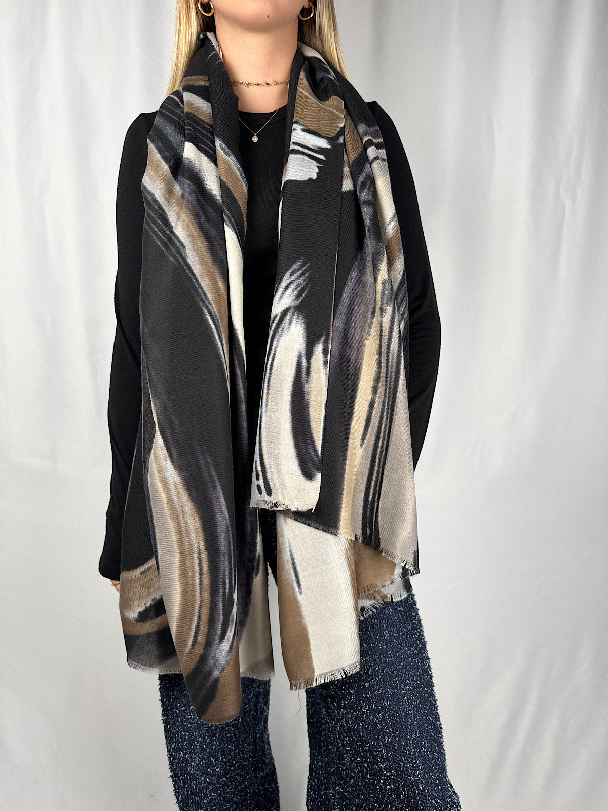 Sciarpa Fantasia Nera Beige e Bianca Armonia