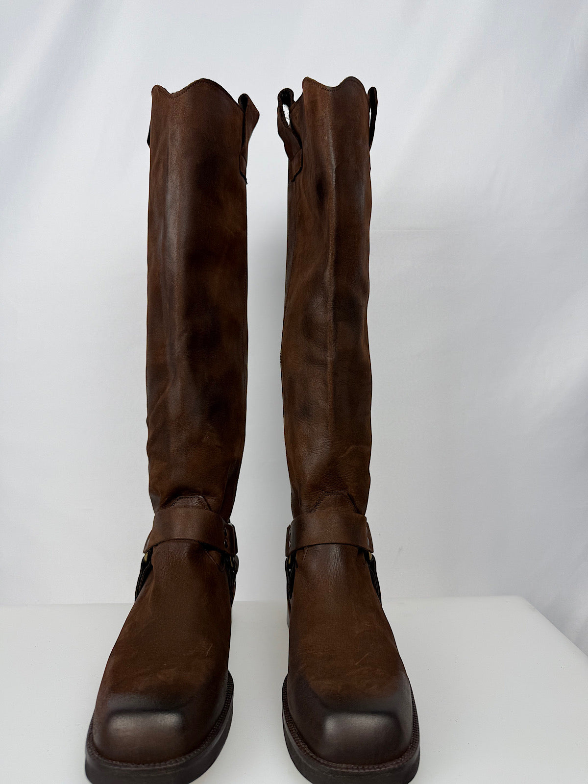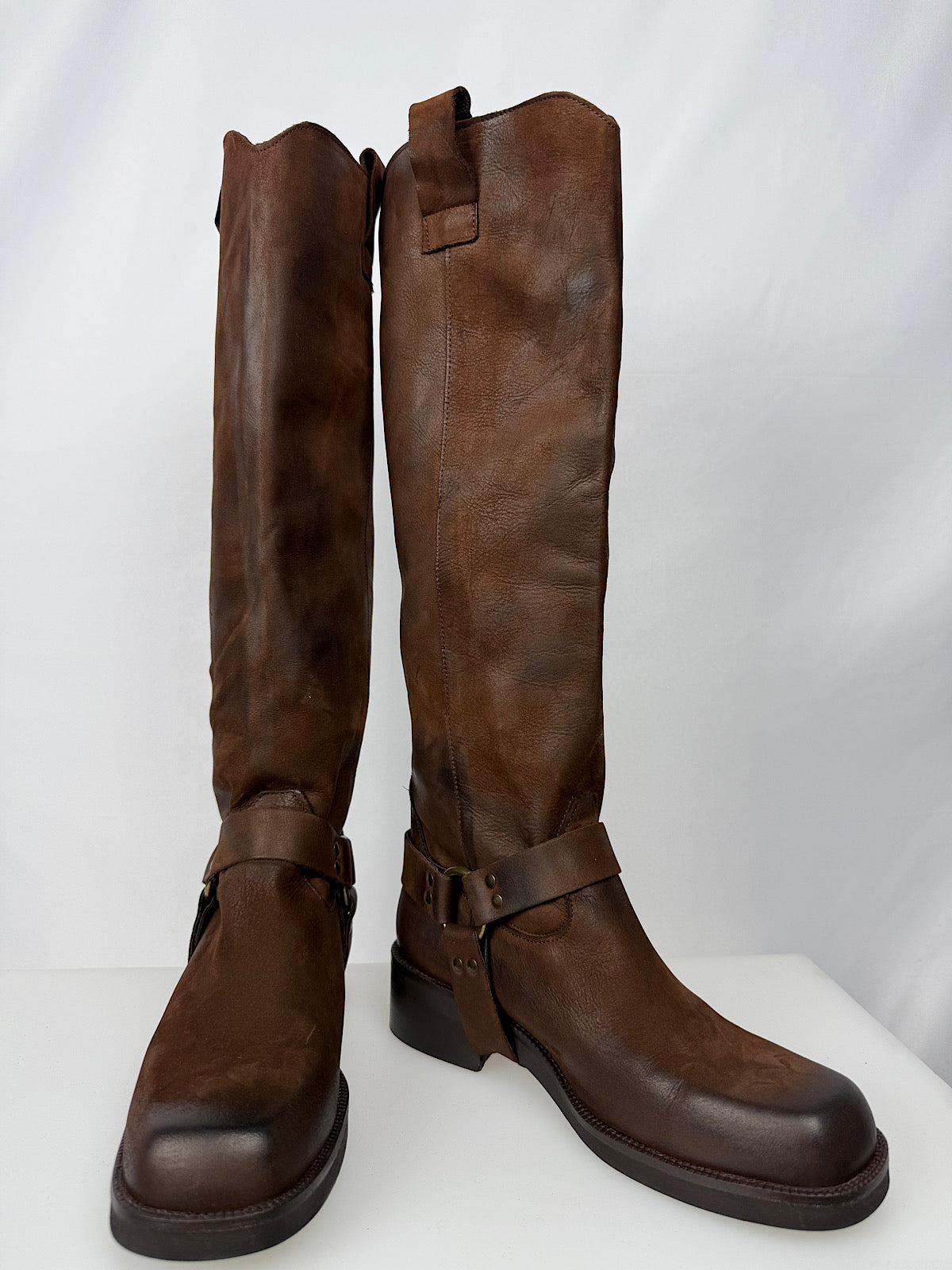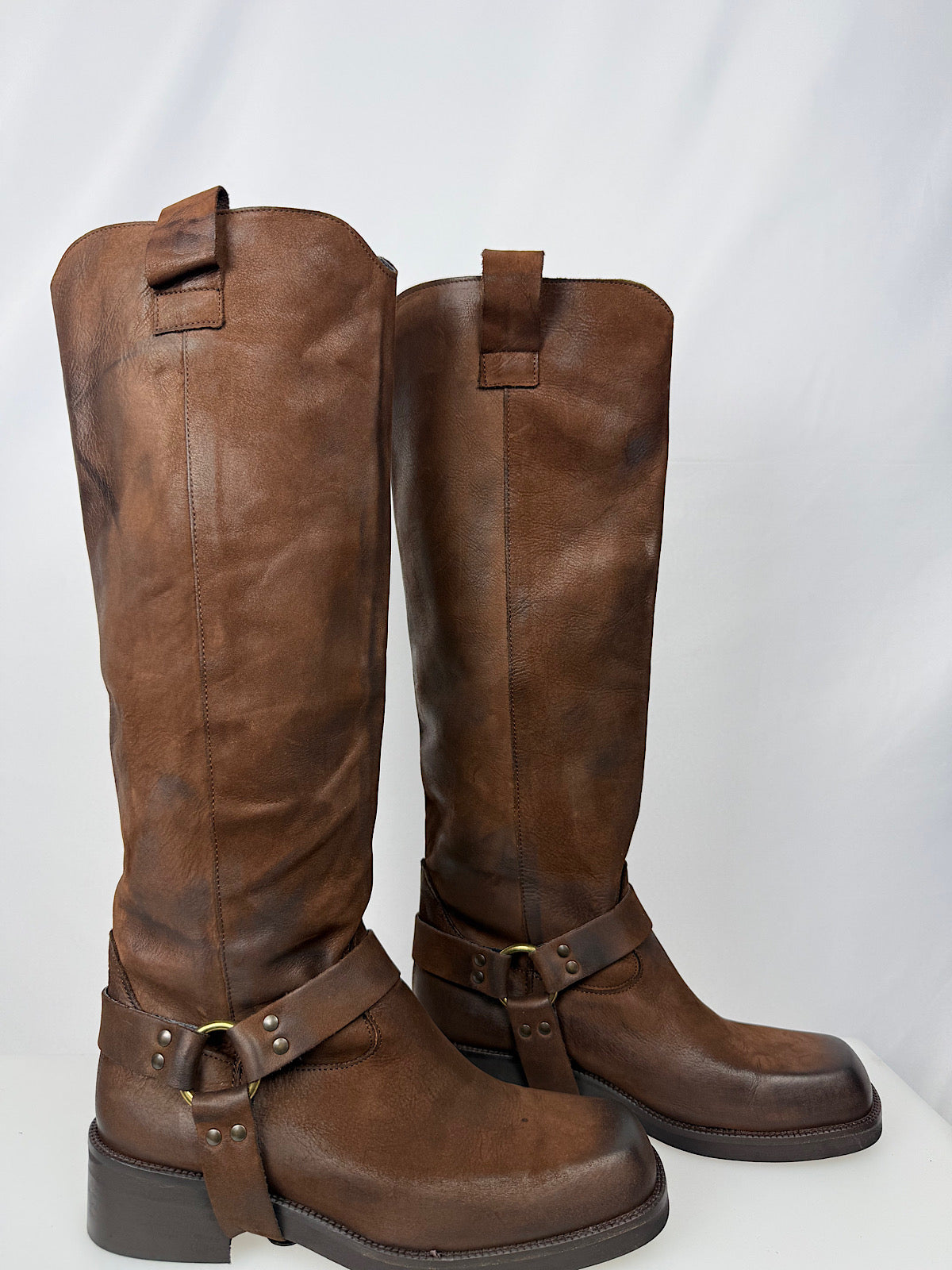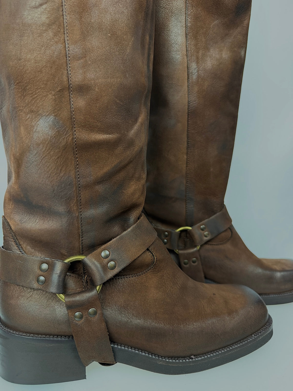 Stivale biker alto moto con dettaglio removibile a bottone.