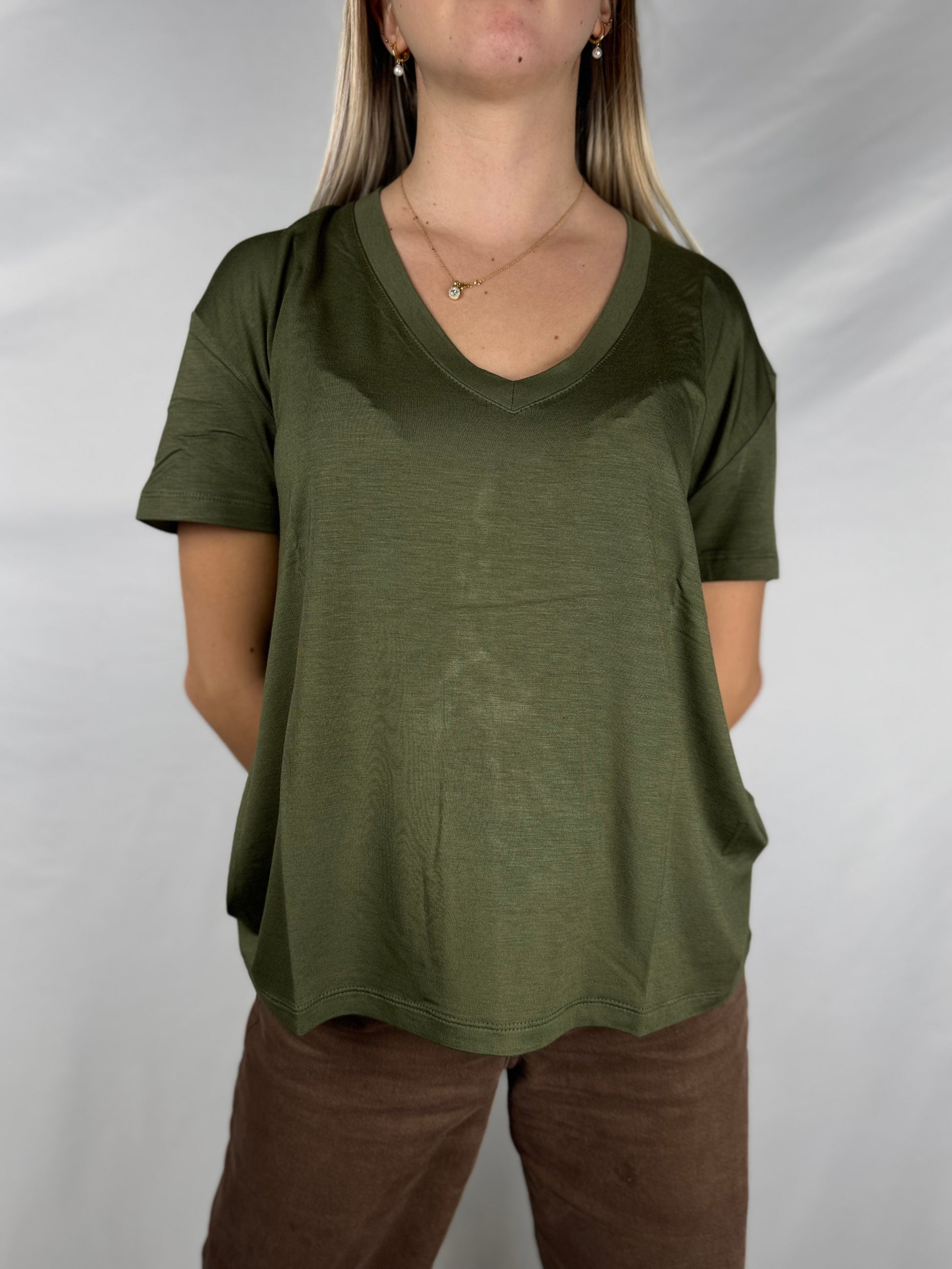 T-Shirt Scollo a V Over Verde Militare Susy Mix