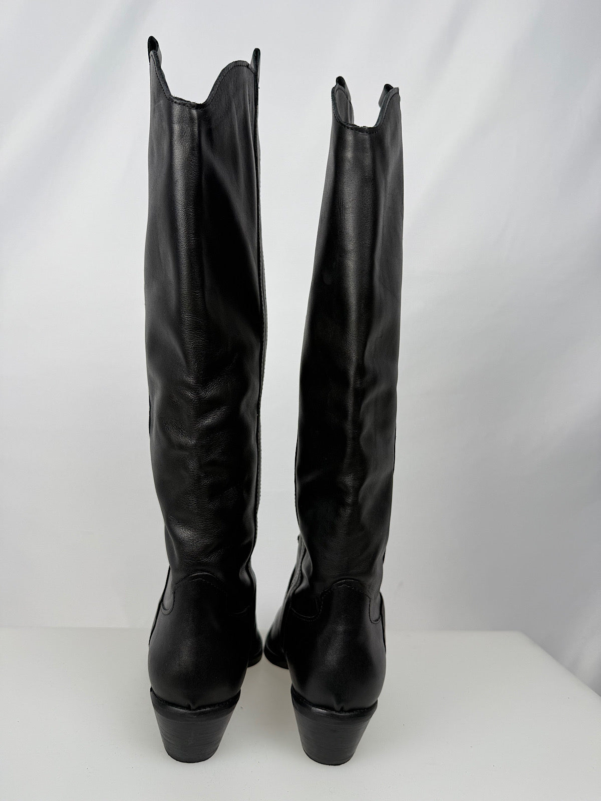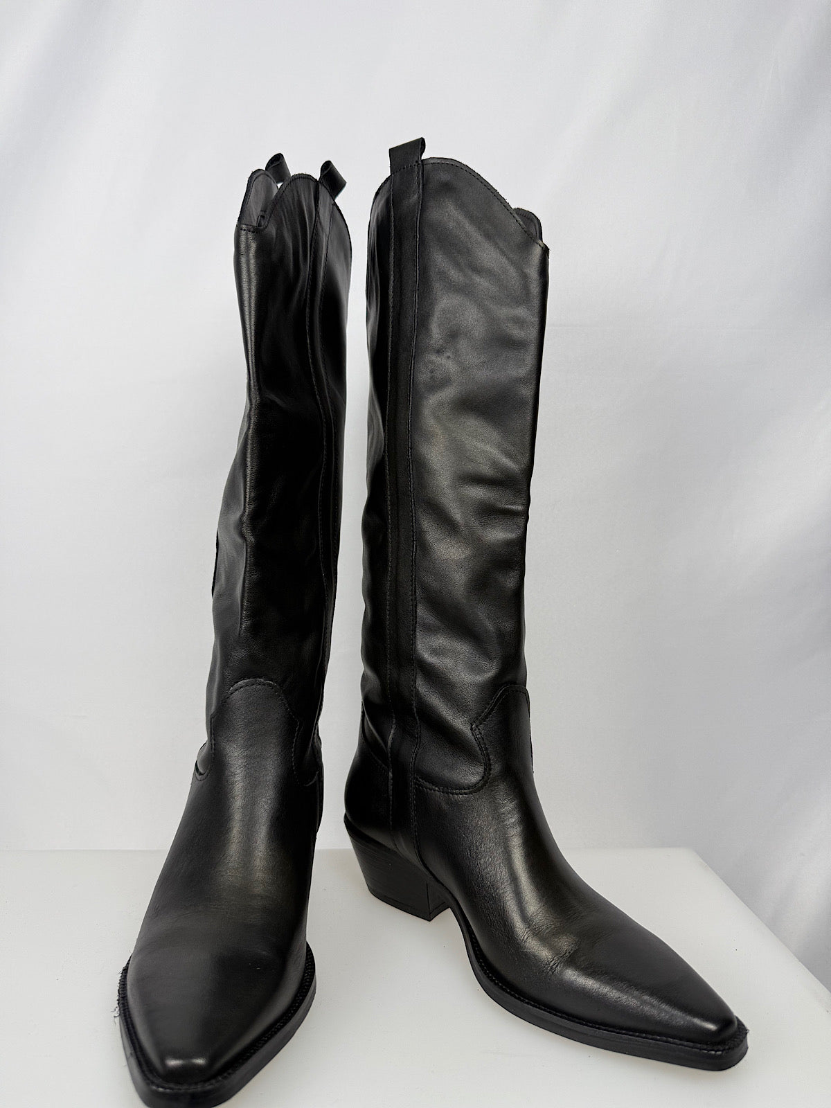 Texano alto in pelle liscia con tacco rettangolare