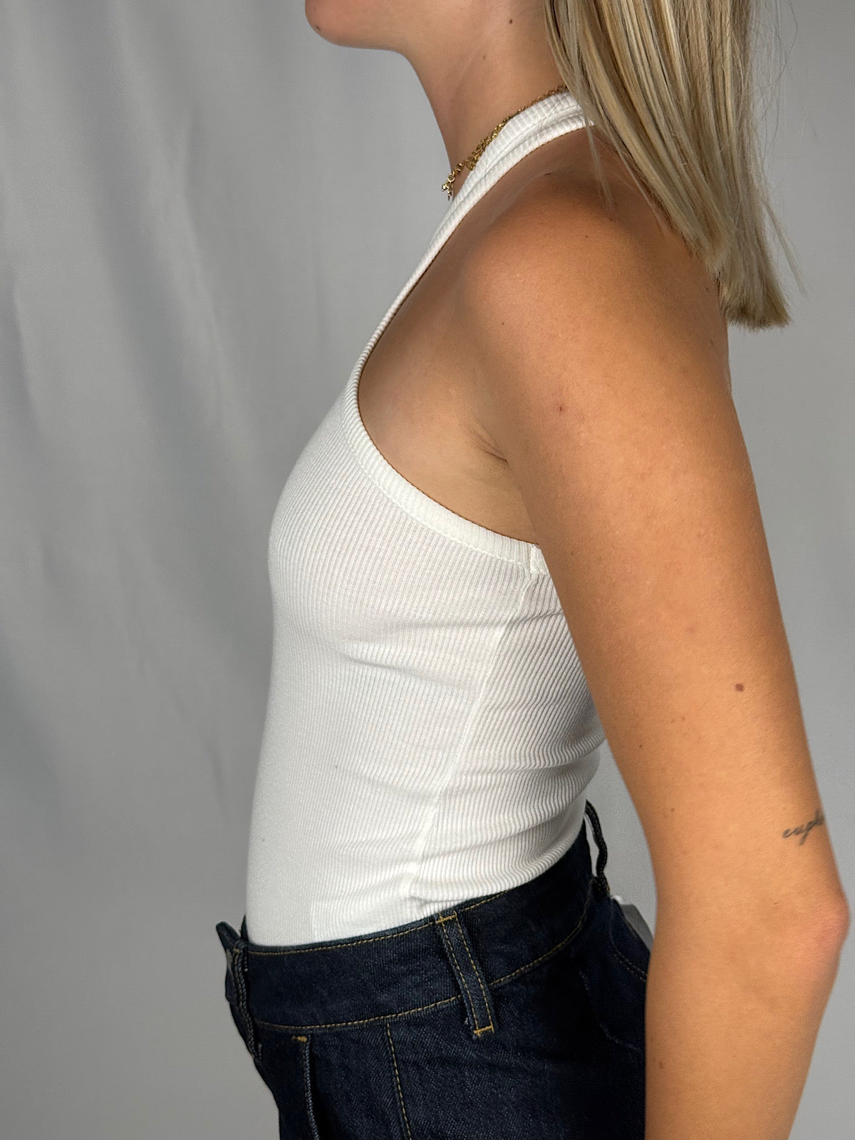 Canotta a costine con scollo alla vogatore.